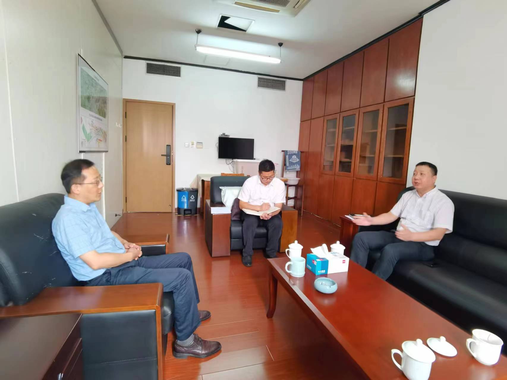 调研期间,苏涛一行再次拜会了江山市市委常委、宣传部长杨君,就推进新一轮乡村振兴项目开展工作交流,并就具体帮促项目达成一致意见。在交流中,杨君对浙盐集团长期以来的帮扶支持,尤其是新一轮帮促大陈村民生项目,助力江山市共同富裕示范区和未来乡村建设表示感谢,要求大陈乡、大陈村全力支持配合,在项目建设中充分体现惠民性、可持续性等要素和浙盐元素的场景化设计。苏涛介绍了前一阶段对相关项目的考察调研情况及浙盐集团在新一轮帮促项目上的思路,期望聚焦“乡之所需,我之所能”,更好的体现“有盐同咸、无盐同淡”的为民情怀,惠及民生,助推共富。
